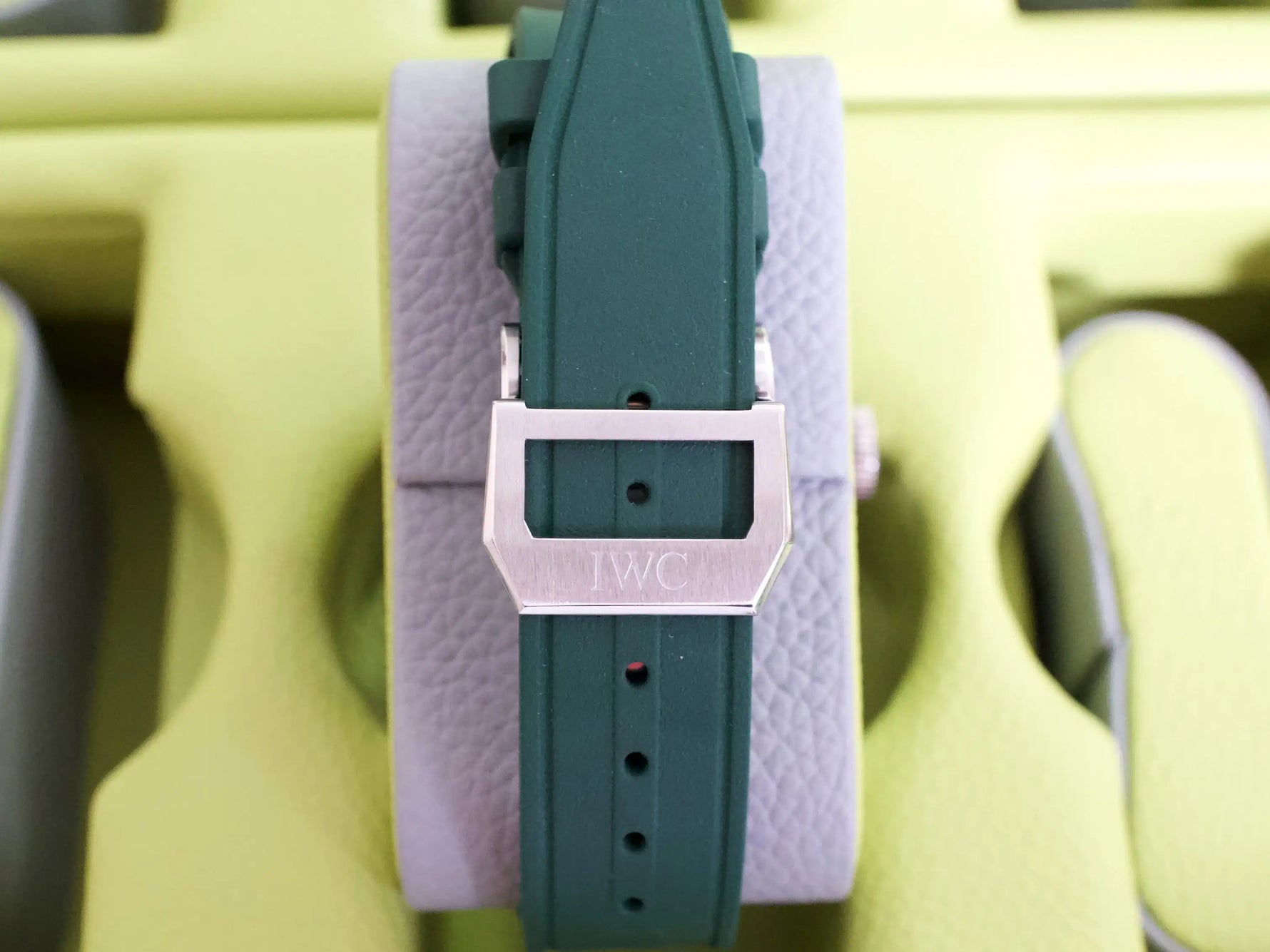 This 2022 example is in Mint Condition, with the factory IWC case showing no signs of wear. It comes equipped with the factory IWC green rubber strap in Near Mint Condition, along with an additional factory IWC leather strap (rated around 9/10), giving you versatile options for different looks and occasions.