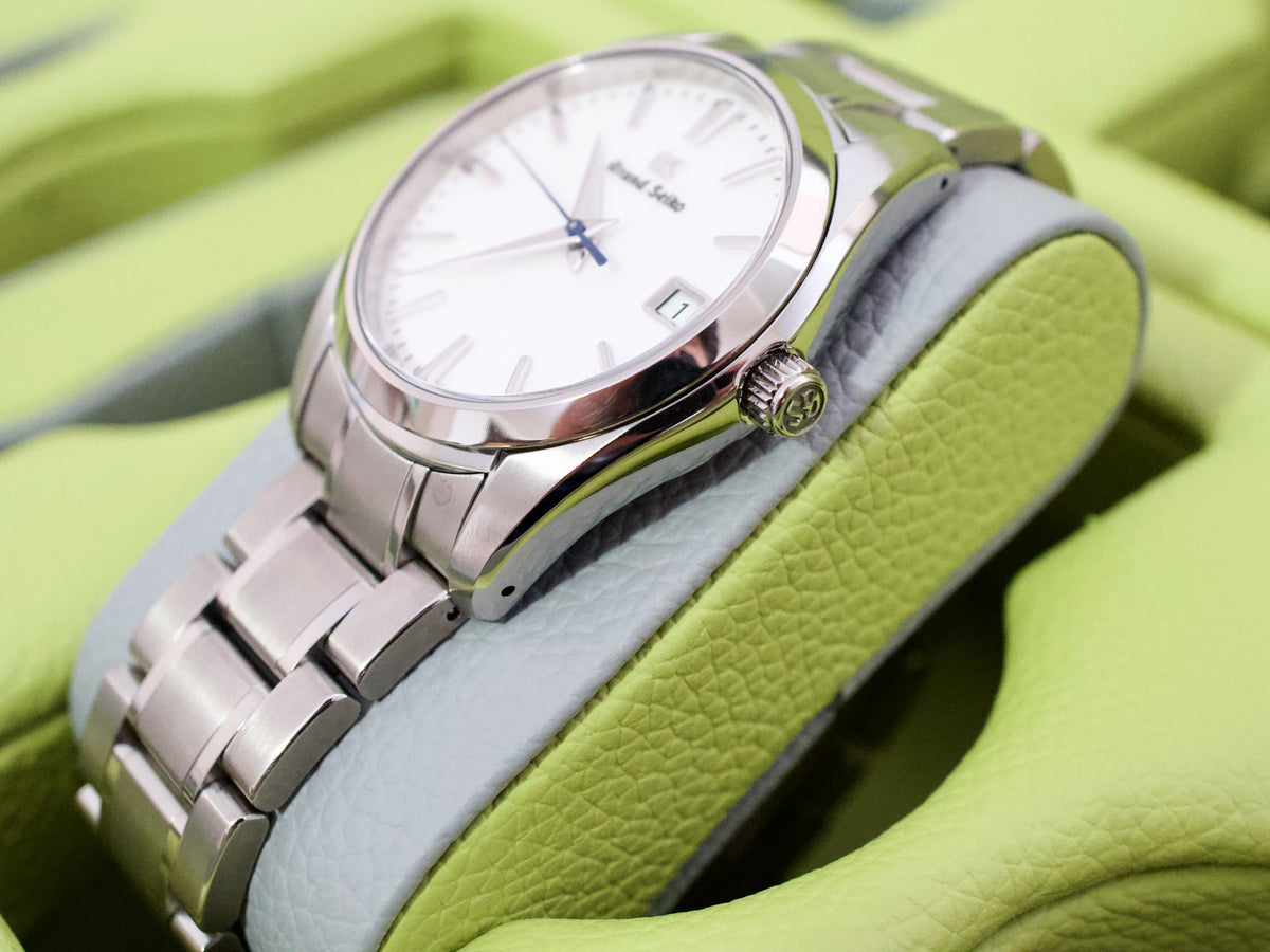 Complete with the factory Grand Seiko box and papers, this is a clean, modern Heritage Collection piece ready to be enjoyed.