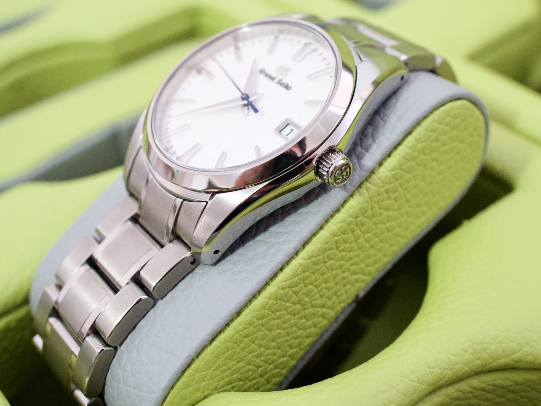 A clean, modern Grand Seiko mint, fully complete, and protected by factory warranty, ready to be worn with confidence.