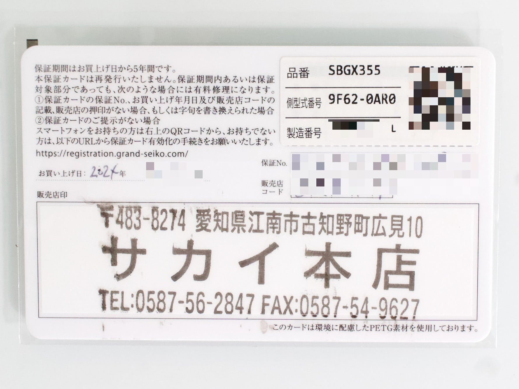 BOX and PAPERS: Factory Grand Seiko Box and Papers