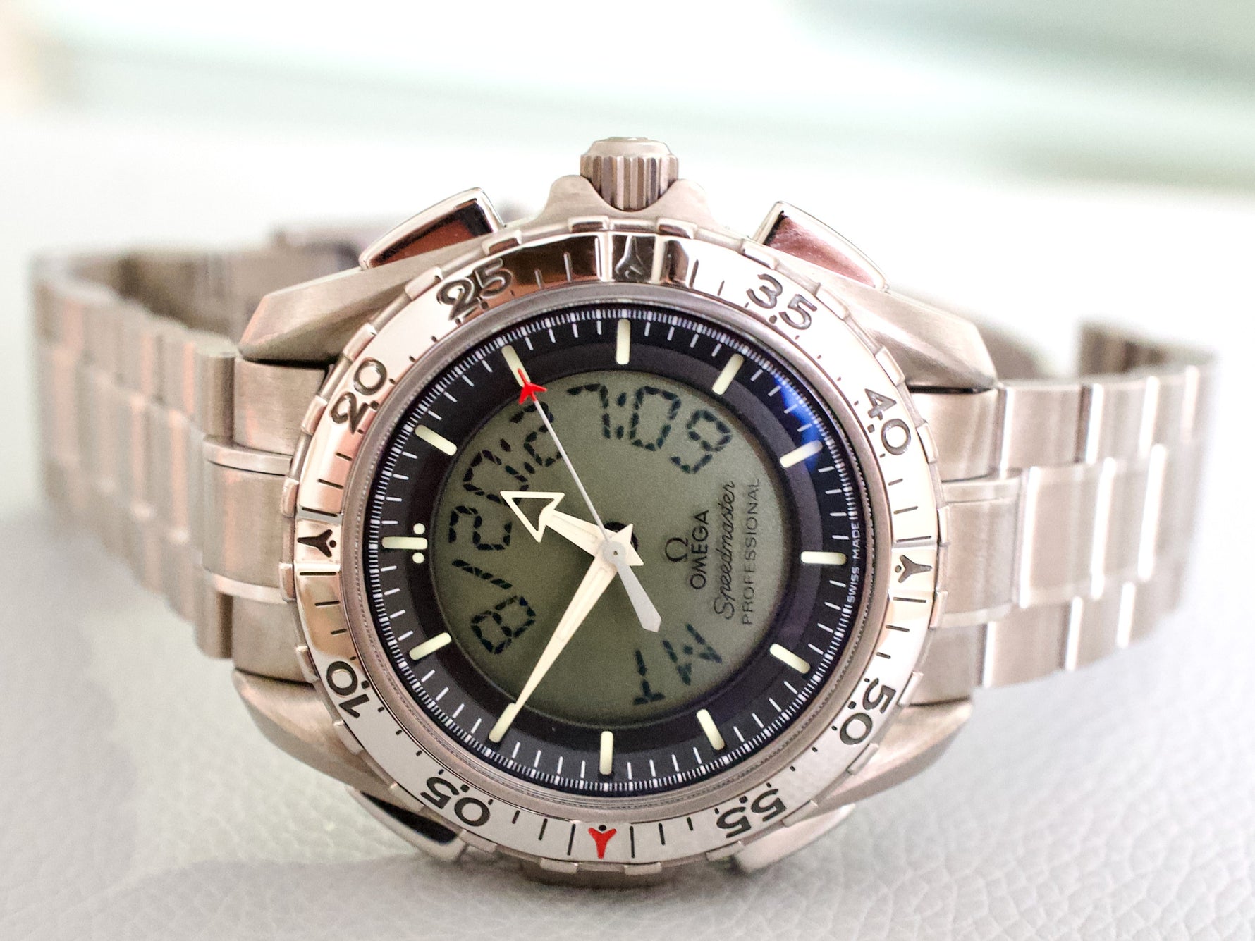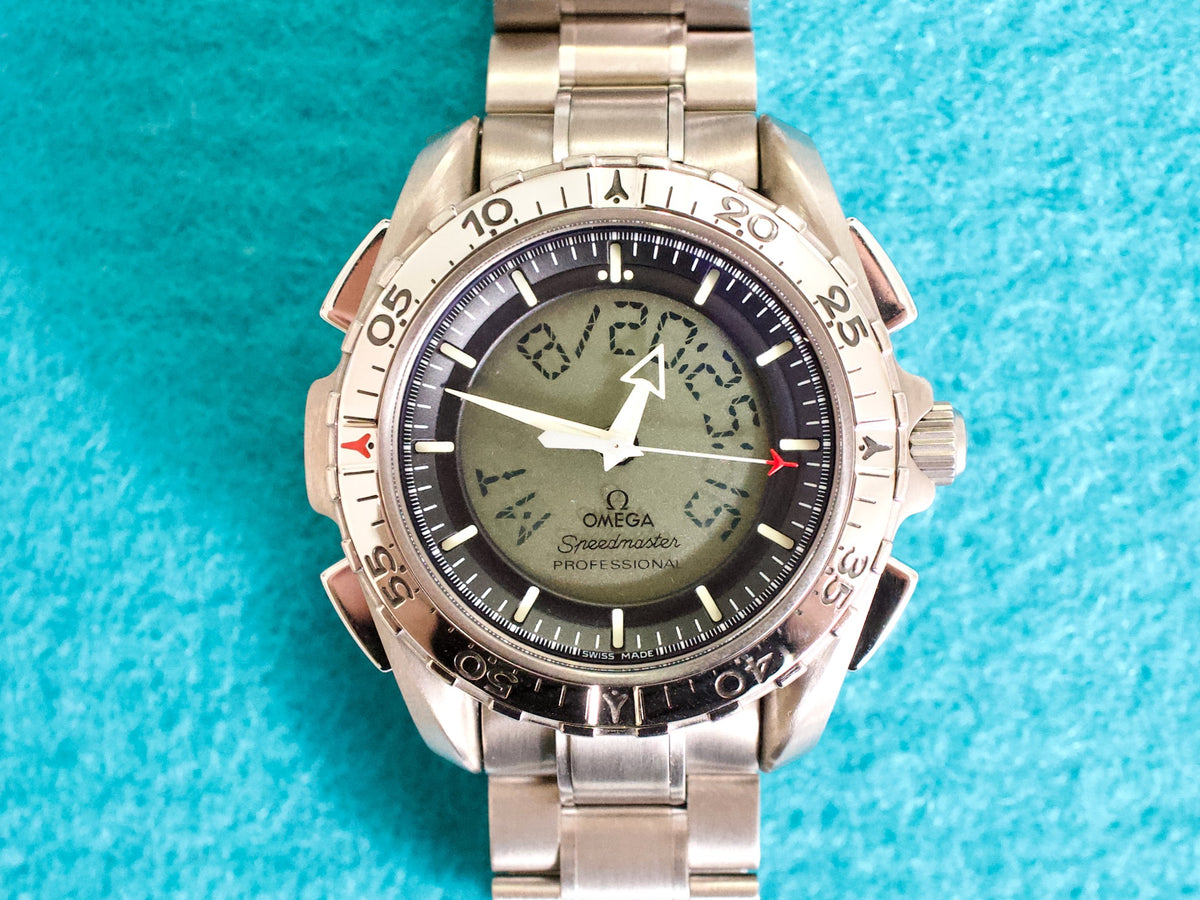This is an authentic Omega Speedmaster X-33 ref. 3290.50.00, a highly respected 43MM titanium professional instrument watch originally developed in collaboration with astronauts and aerospace professionals. Featuring a unique analog-digital display, this Speedmaster X-33 offers exceptional functionality while remaining lightweight and extremely wearable thanks to its titanium construction.