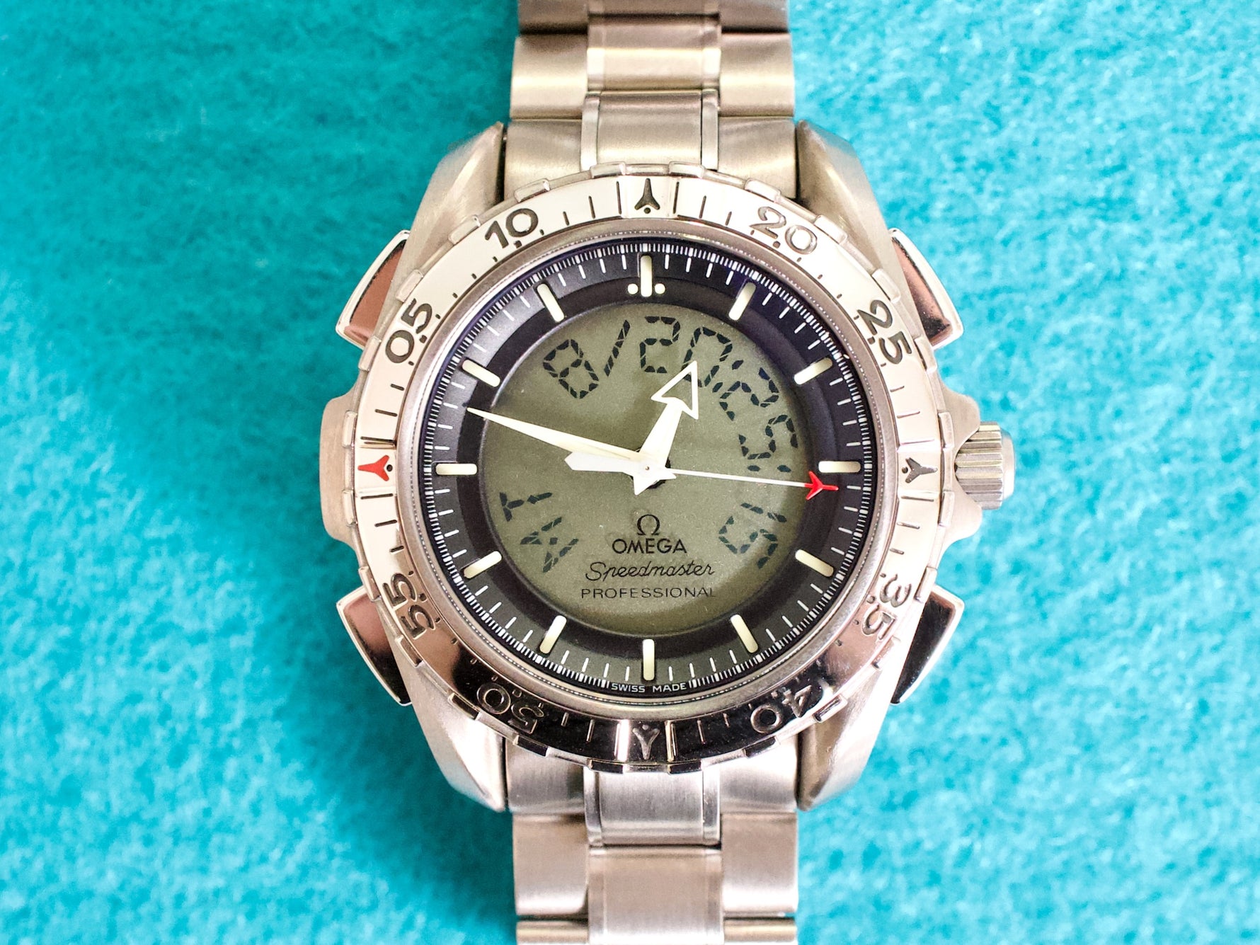 DIAL/HANDS/BEZEL: Factory Omega Analog-Digital Dial, Handset, and Bezel
