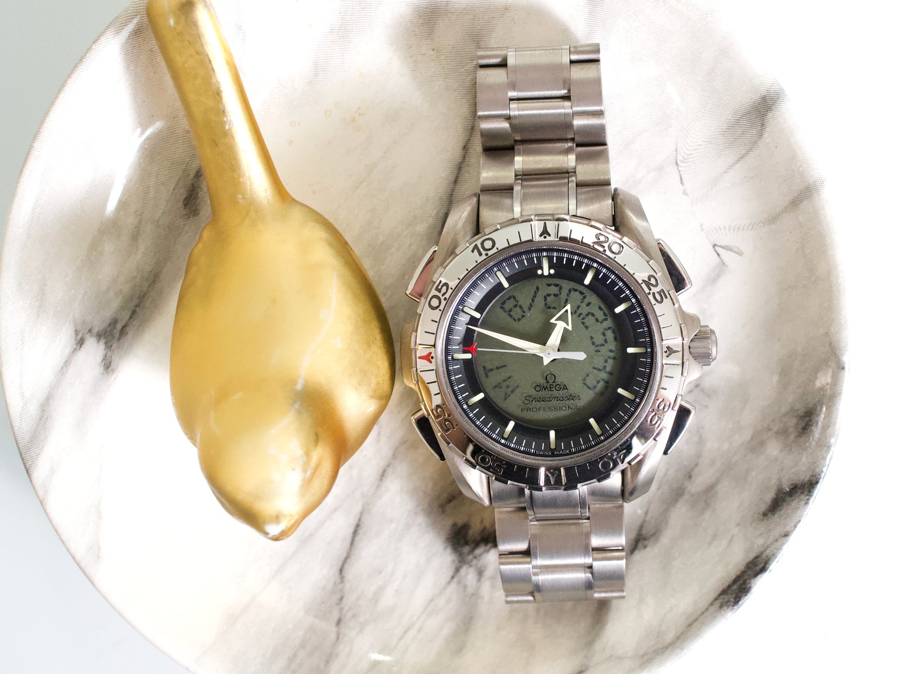 Equipped with a high-precision quartz movement, the X-33 includes multiple advanced functions such as GMT, chronograph, alarm, mission timer, and UTC, making it one of the most technically capable Speedmasters ever produced.