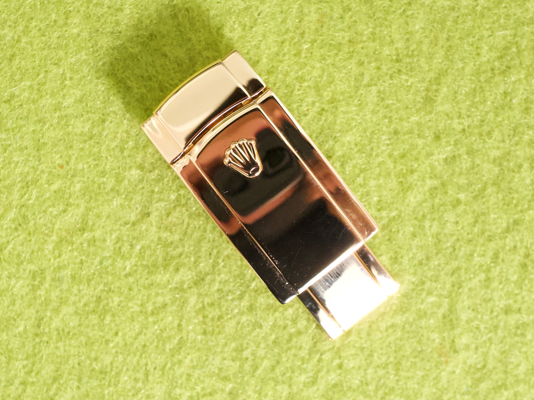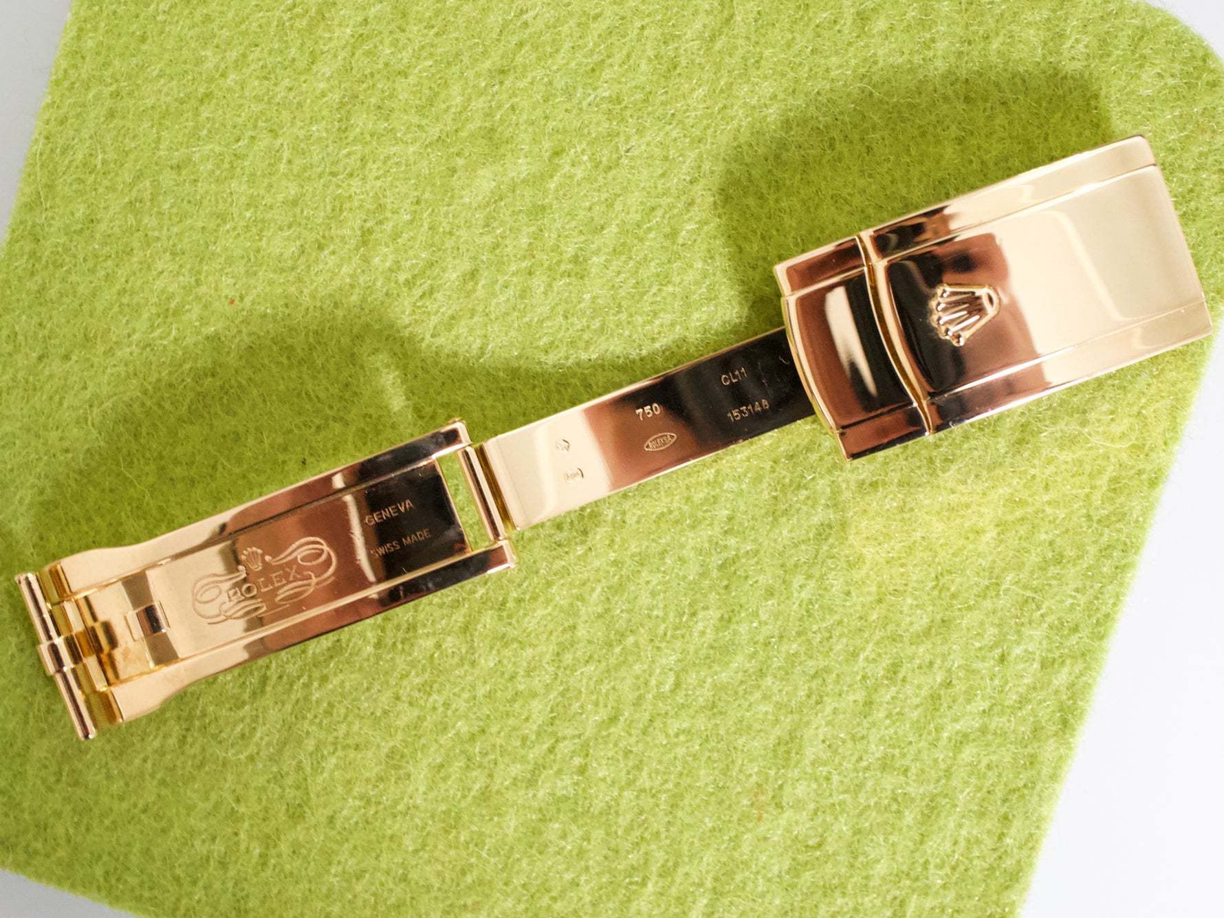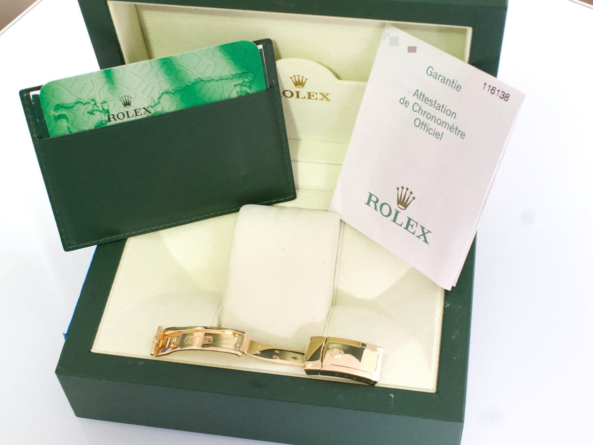 This 2006 example is in Near Mint Condition (approx. 9.7/10) and comes from a single-owner collection. The watch presents beautifully throughout and remains a full-set, including the original box and papers. It is currently fitted with an aftermarket strap and includes the original factory Rolex solid gold buckle, a valuable and correct detail for this reference.