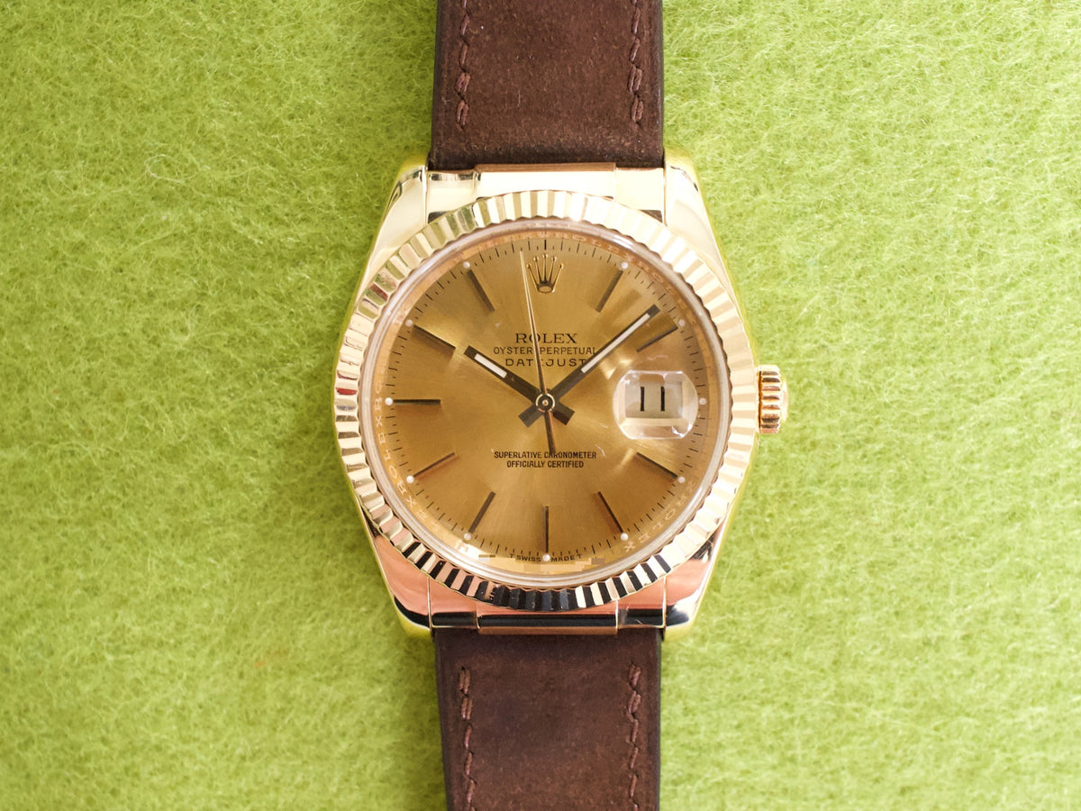 This is an authentic Rolex Datejust 36 ref. 116138, a discontinued model crafted entirely in solid 18K yellow gold. Featuring a classic champagne dial, this reference delivers unmistakable Rolex presence with refined proportions that remain timeless and highly wearable. As an all-gold Datejust that is no longer in production, the 116138 has become increasingly desirable among collectors.