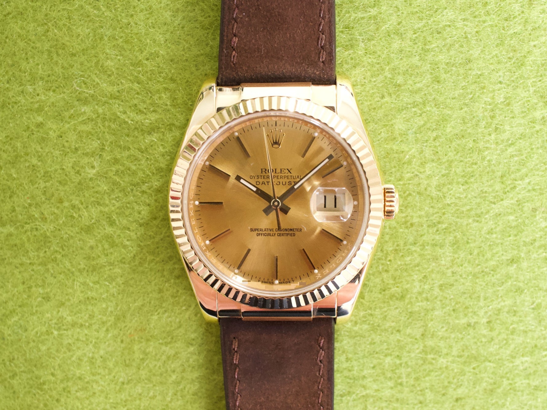 DIAL/HANDS/BEZEL: Factory Rolex Champagne Dial, Handset, and Bezel