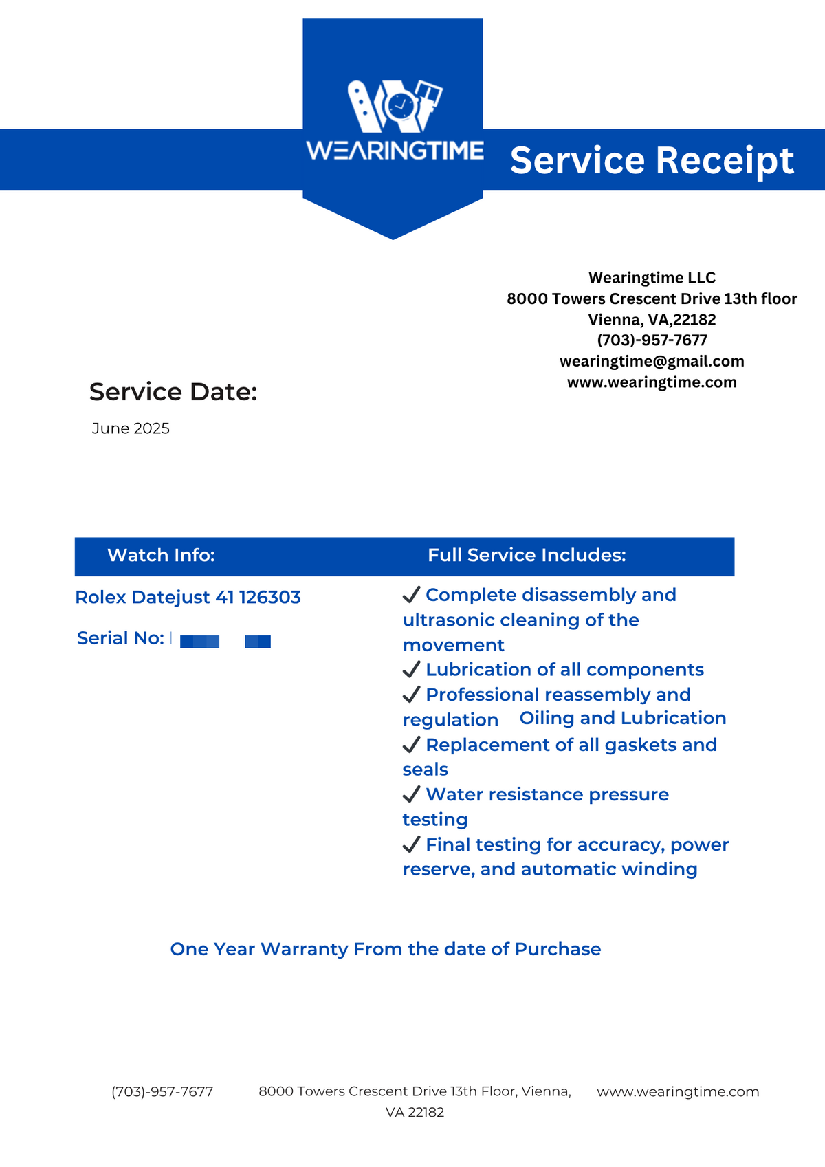 This is your chance to own a Rolex Datejust 41 126303 — a mint-condition, two-tone classic with full 2025 service and warranty, ready to wear and enjoy.