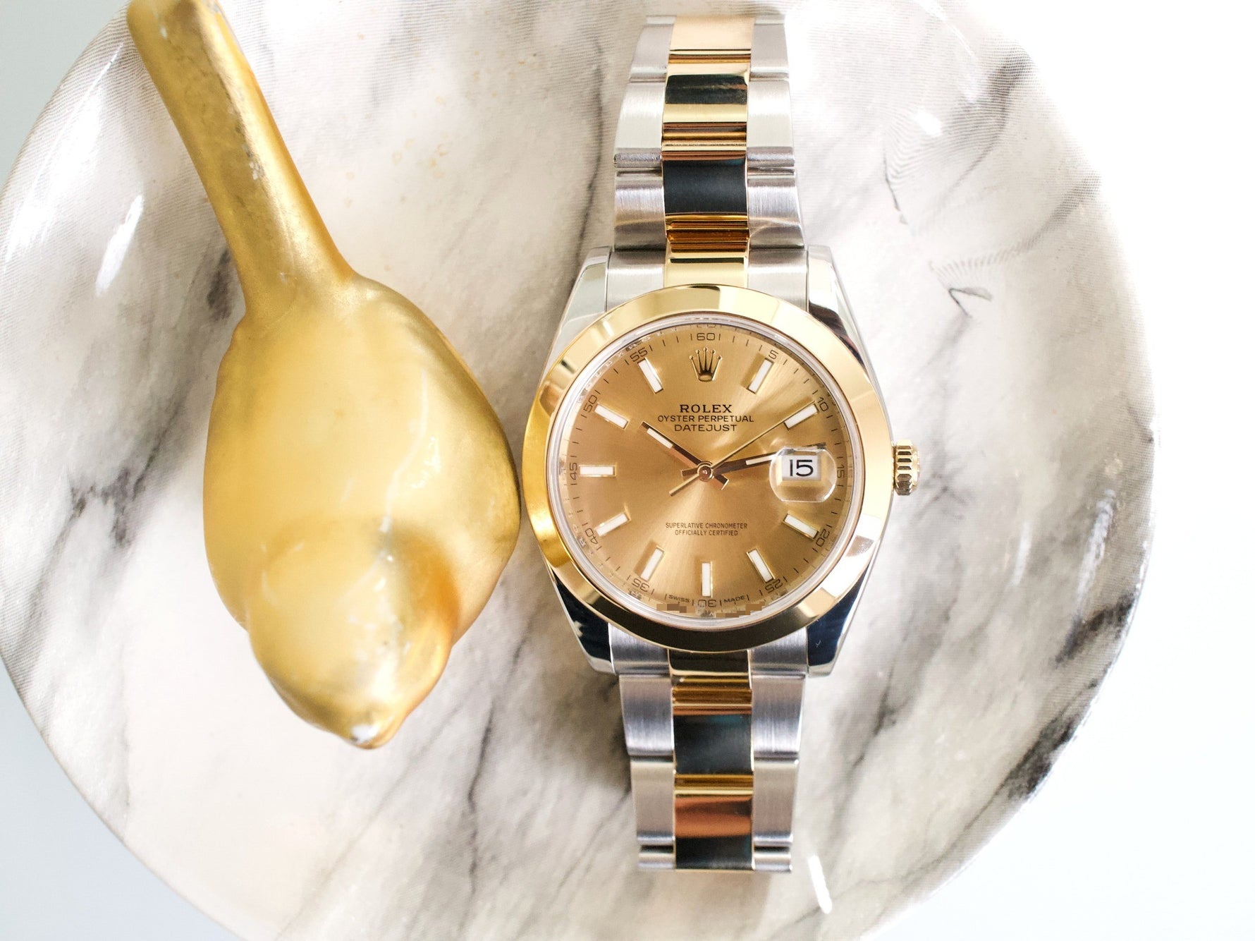 Rolex Datejust 41 126303 Automatic Smooth Bezel Champagne Dial Two Tone 18k Yellow Gold Box
