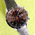 This is an authentic TAG Heuer Carrera Calibre 16 ref. CV2014-2, a sporty and versatile 41MM automatic chronograph inspired by the brand’s rich motorsport heritage. With its balanced dial layout and classic Carrera case design, this model delivers everyday wearability with true chronograph functionality.