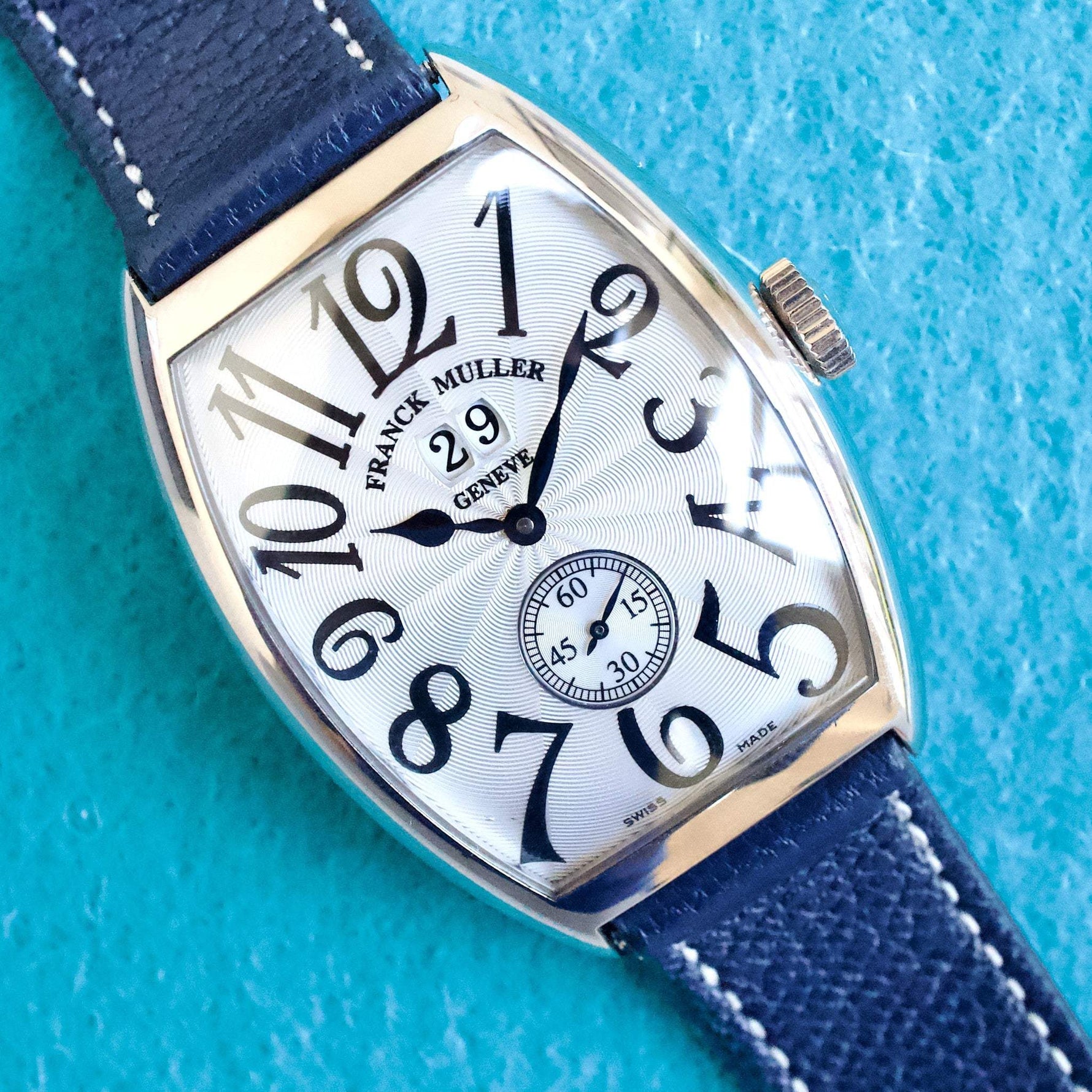 BRACELET: Aftermarket strap. Factory 18k Franck Muller buckle.