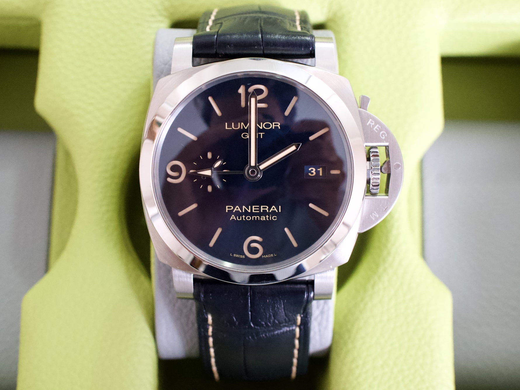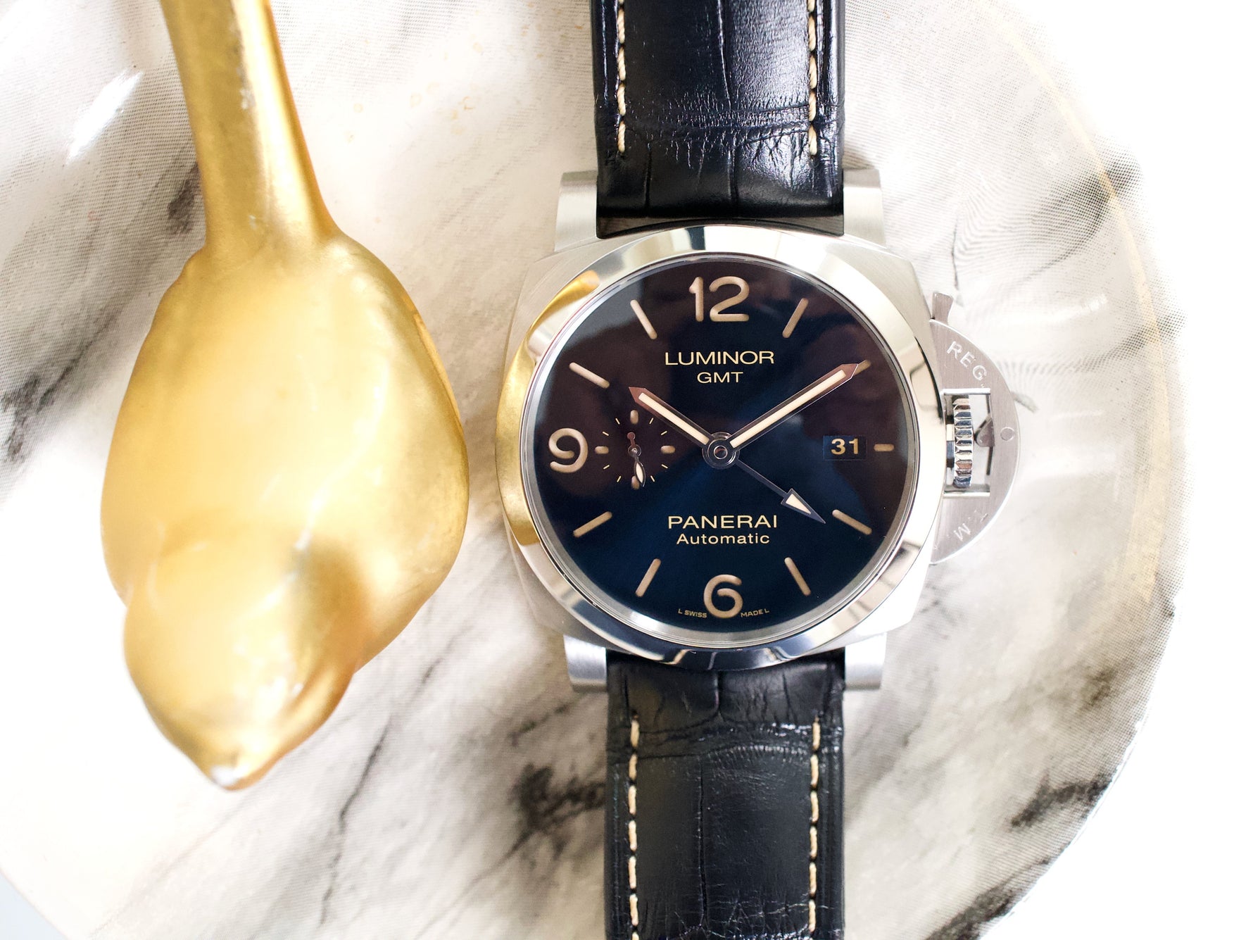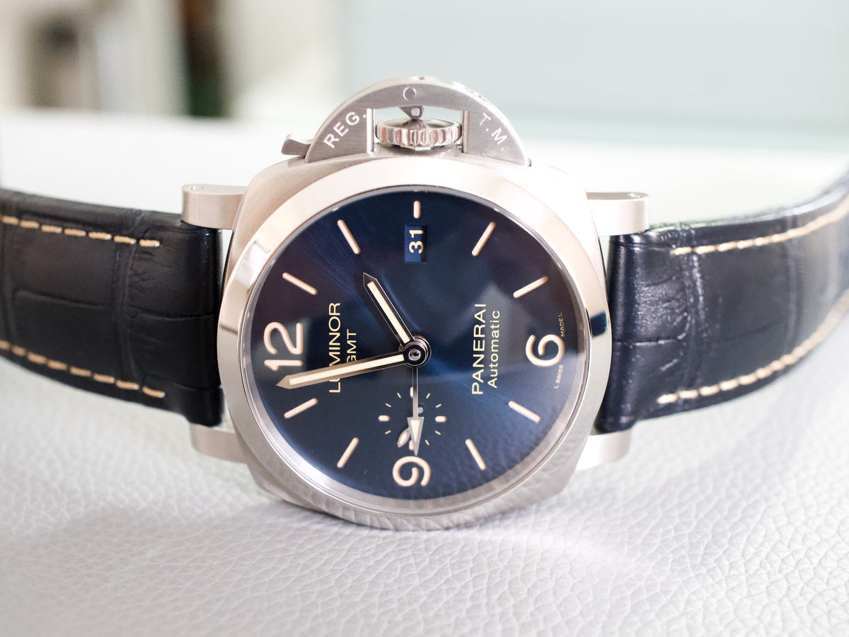This is your chance to own a Panerai Luminor 1950 PAM01033 GMT — a mint-condition example with a standout blue dial, ready to wear and enjoy.