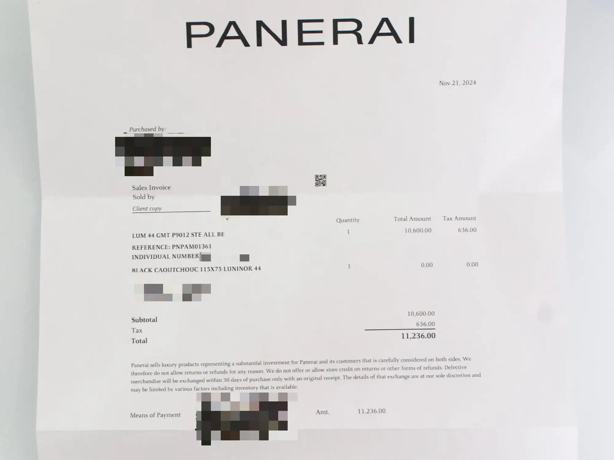 Powered by a Panerai in-house automatic movement, it delivers reliable GMT functionality — ideal for travelers who value precision and timeless style. Originally sold for $11,236.00