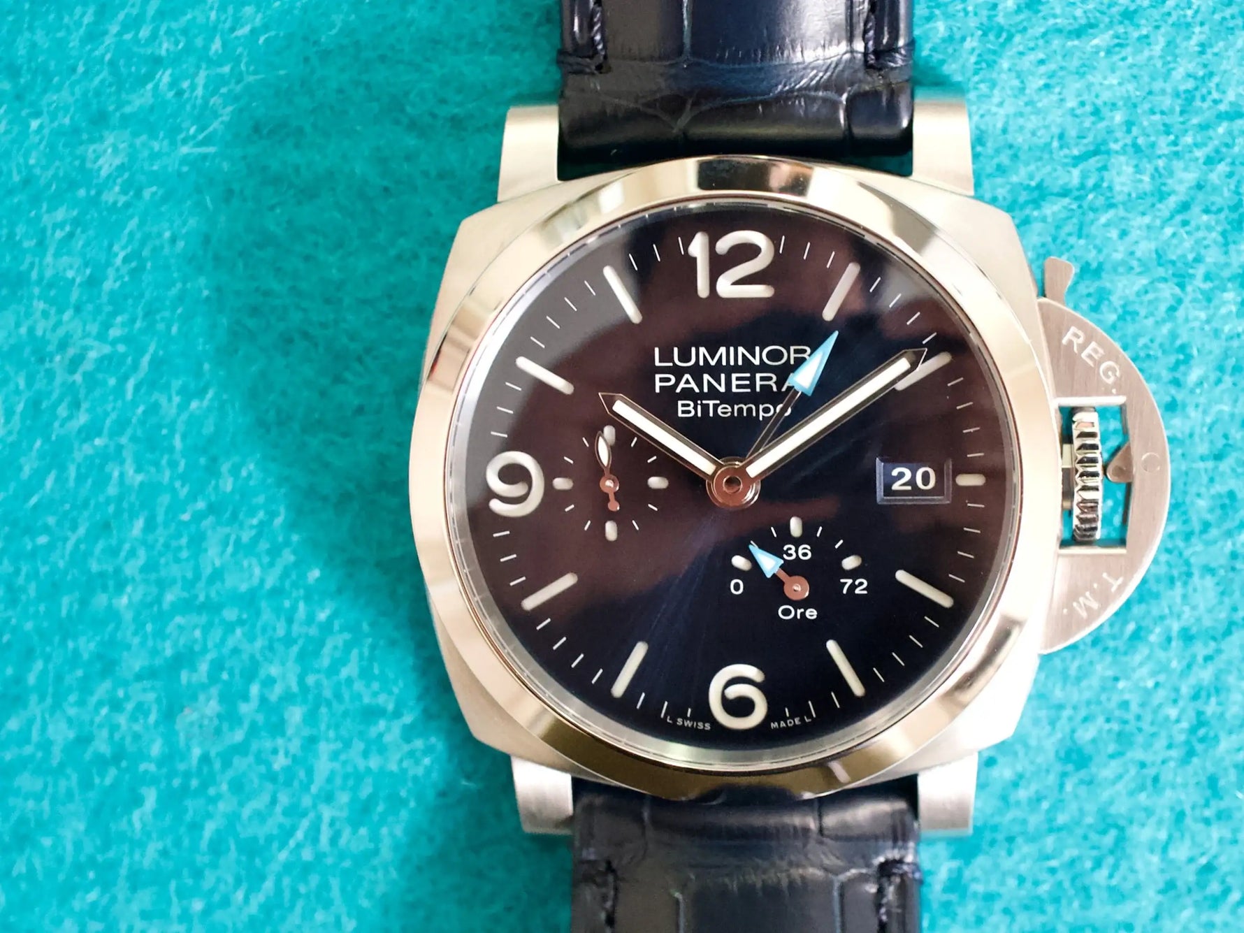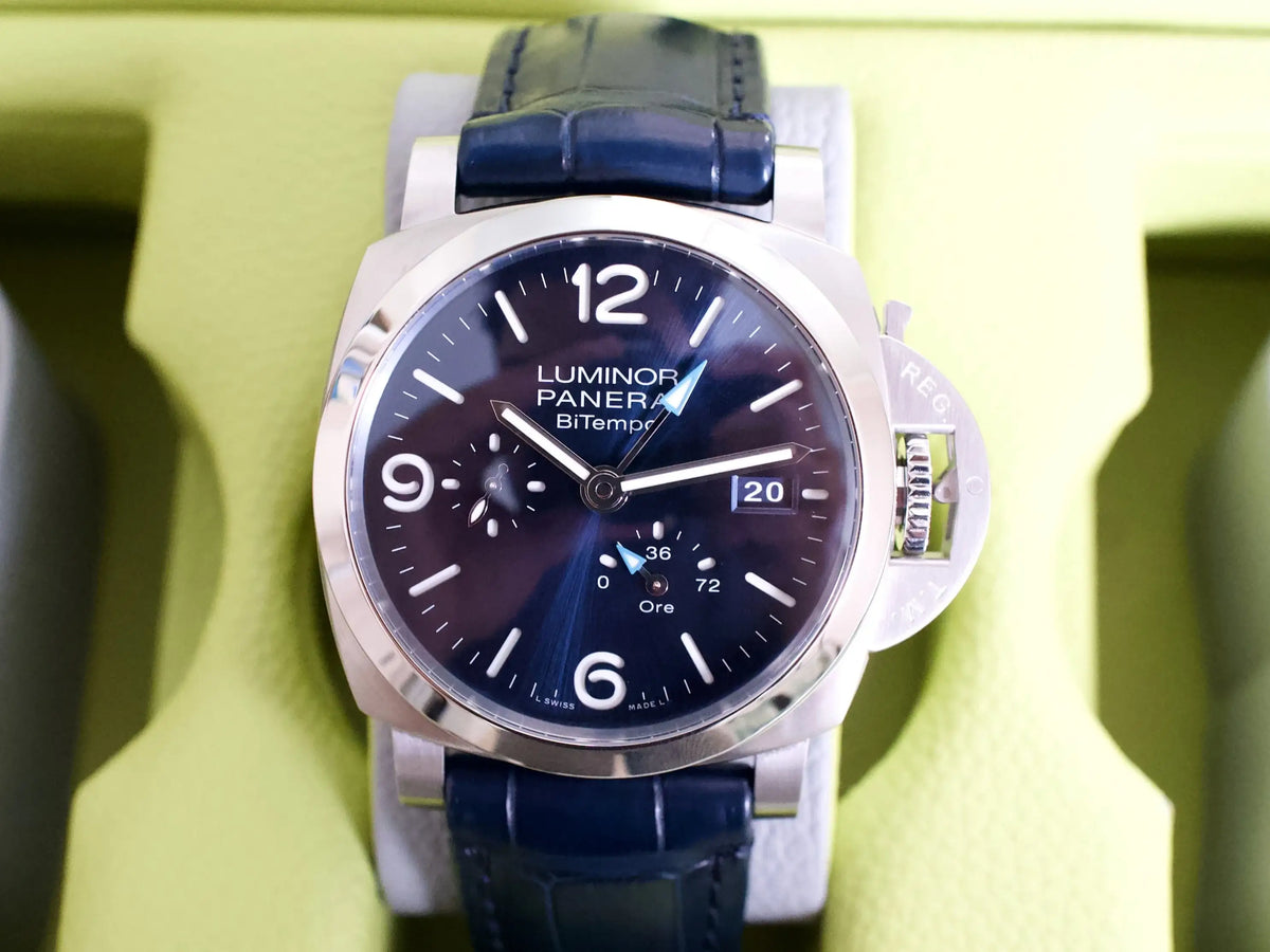 This is your chance to own a Panerai Luminor 1950 BiTempo PAM01361 — a mint-condition, full-set example under factory warranty until 2032, ready to wear and enjoy.