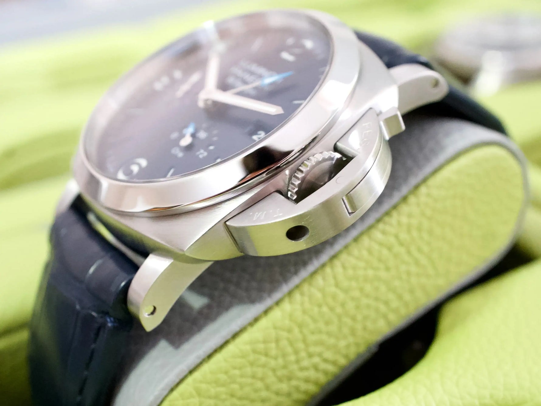 This 2024 example is in Mint Condition, showing no visible signs of wear, and remains under Panerai factory warranty until 2032, offering exceptional peace of mind for years to come. The factory leather strap is in excellent condition (around 9/10), complementing the watch’s sporty yet elegant presence.