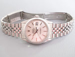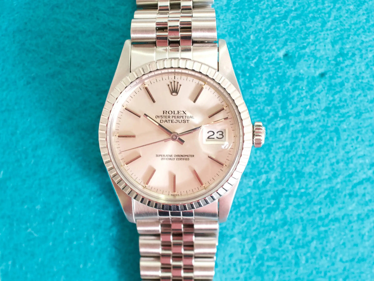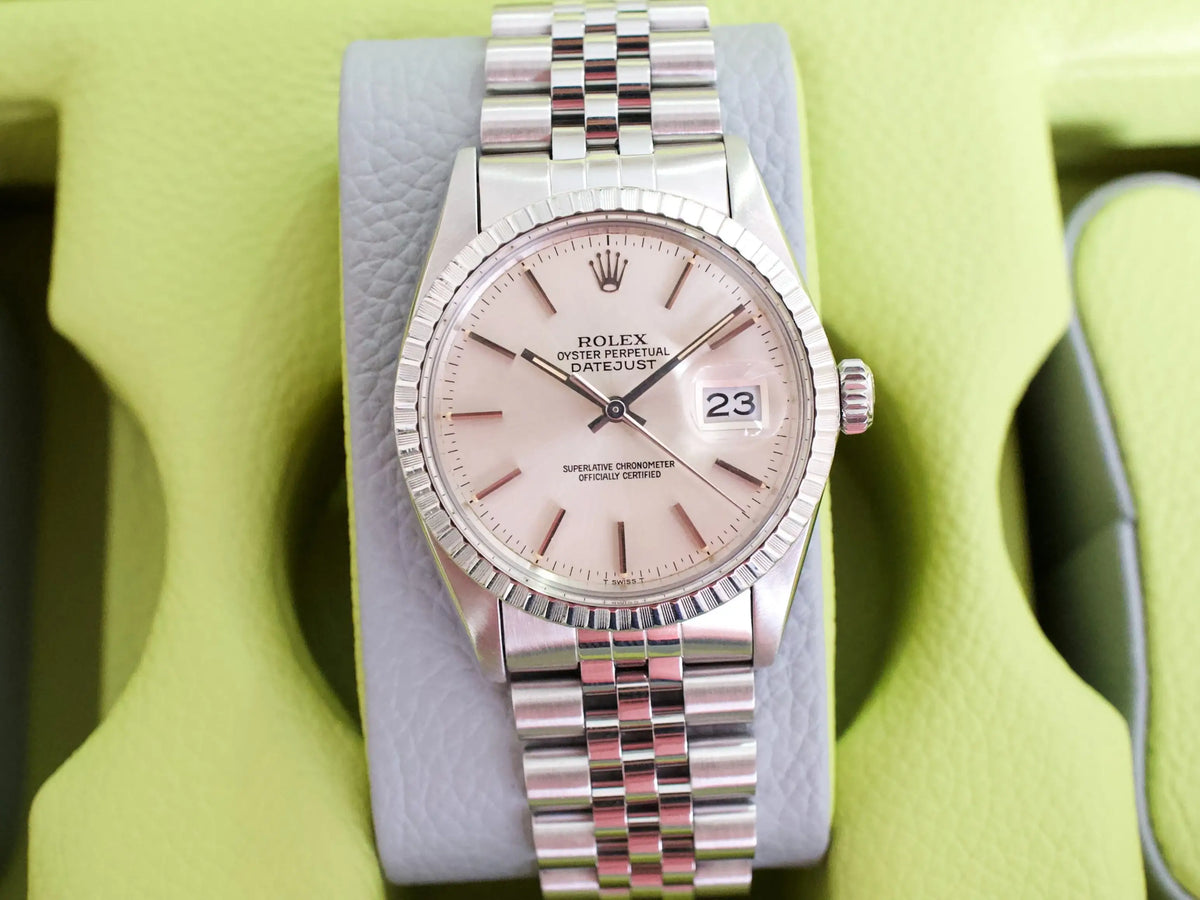 This is an authentic Rolex Datejust 16030, a timeless 36MM classic distinguished by its engine-turned bezel, clean dial design, and the iconic Jubilee bracelet. Produced in 1984, this reference represents the enduring charm, precision, and reliability that define vintage Rolex Datejust models.