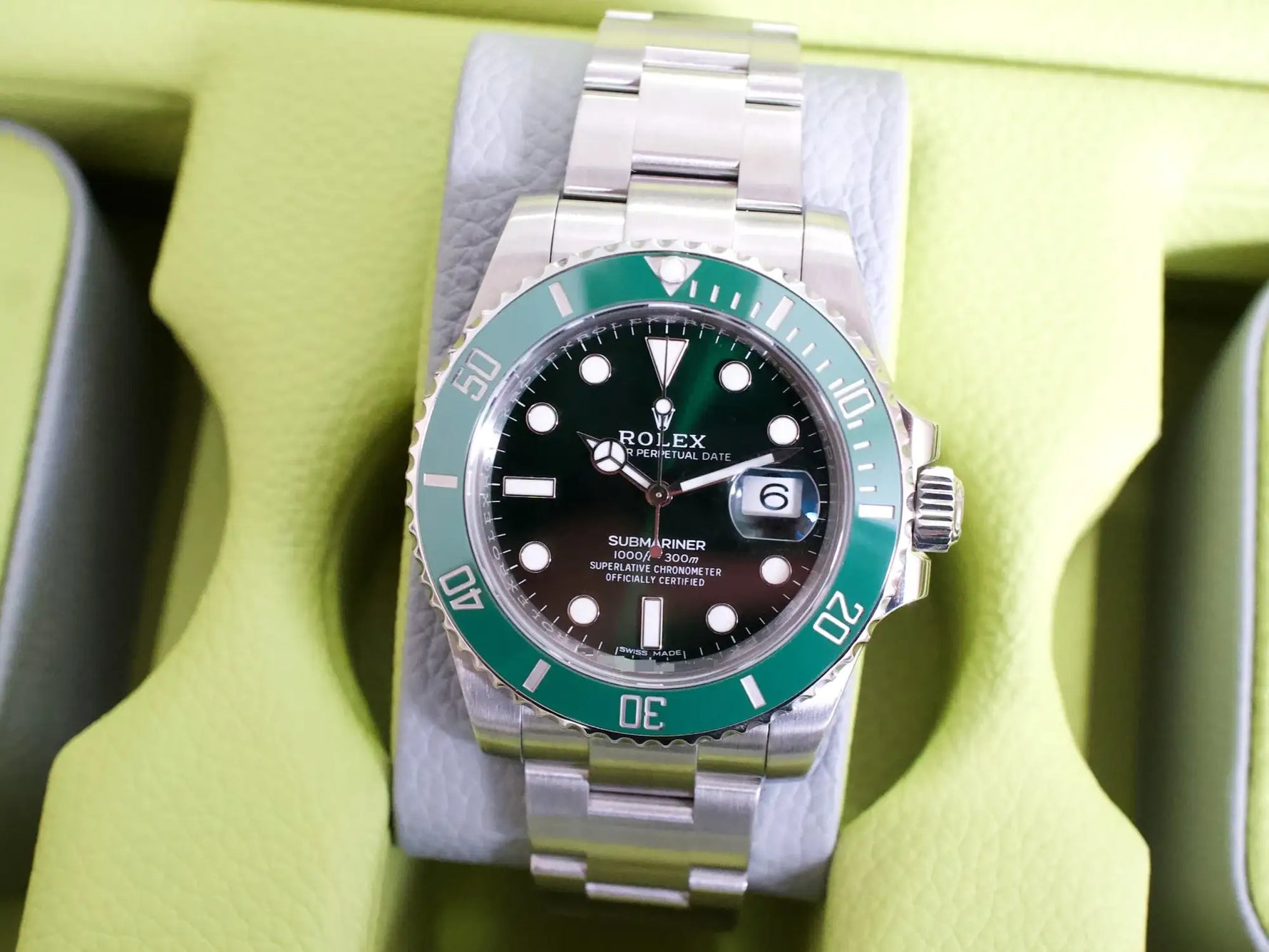 SOLDOUT: Rolex Submariner Date Hulk 116610LV Ceramic Bezel Discontinued Factory Green Dial 40MM 1 Year Warranty Box Papers 2011