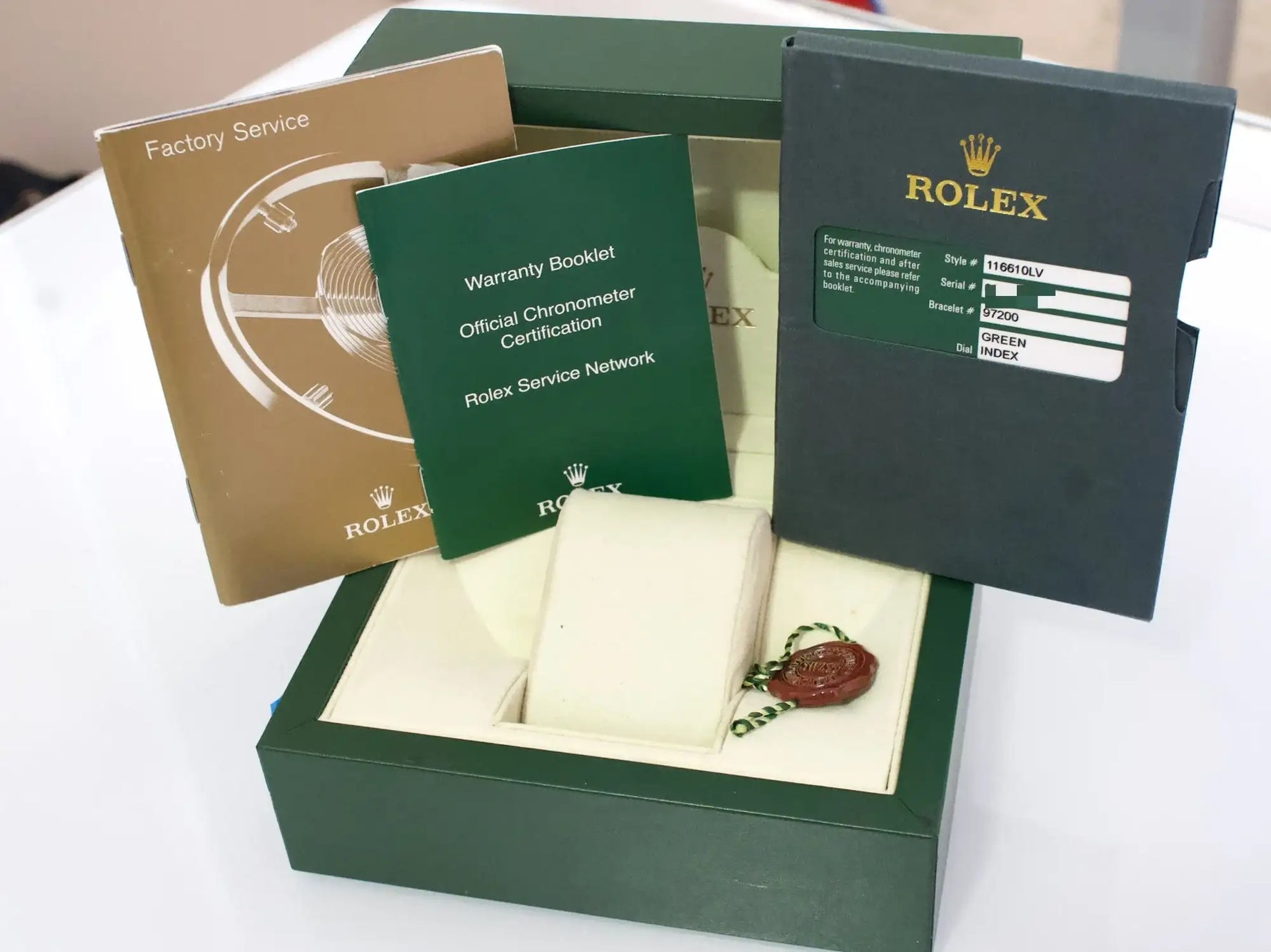 BOX and PAPERS: Factory Rolex Box and Papers (As Pictured)