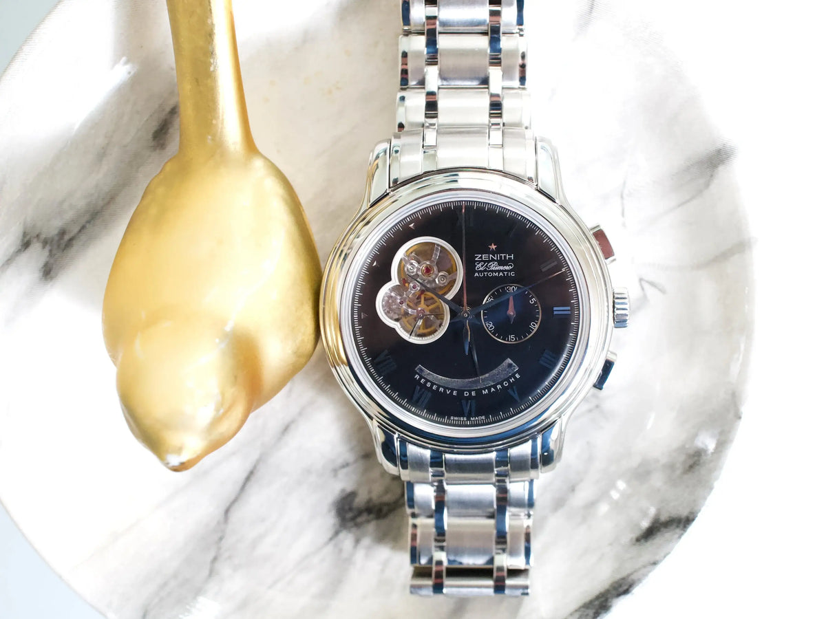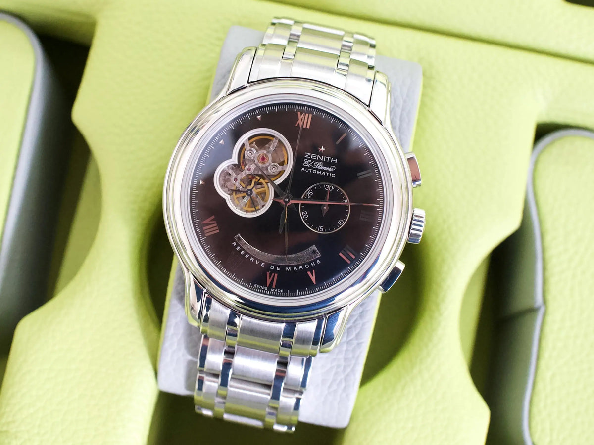 DIAL/HANDS/BEZEL: Factory Zenith Handset and Open-Heart Dial