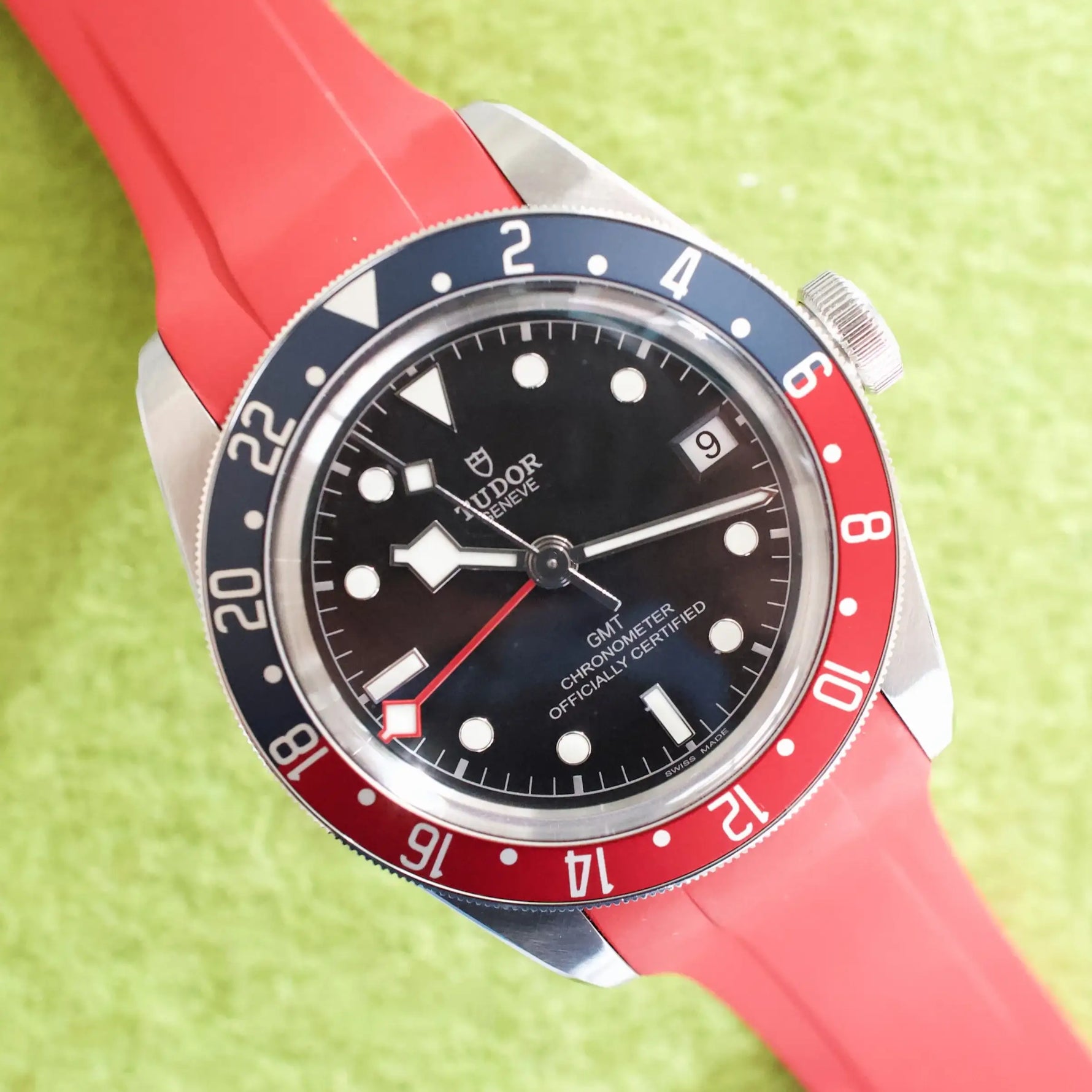 DIAL/HANDS/BEZEL: Factory Tudor Handset, Black Dial, and Pepsi Bezel