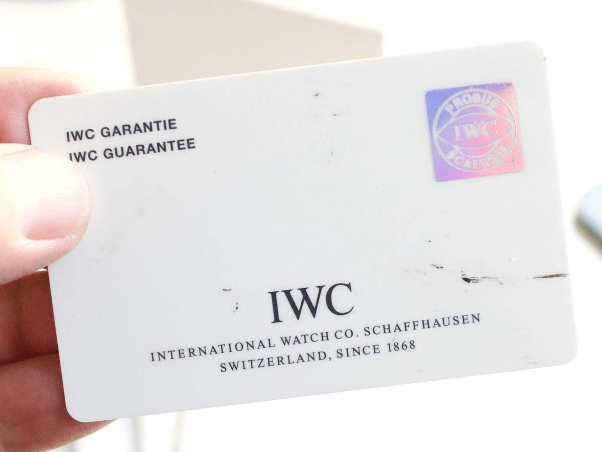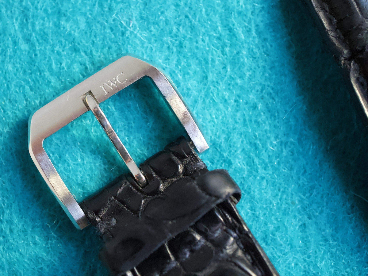 BRACELET: Factory IWC Strap with Factory IWC Buckle 7/10. Also comes on a new Black Leather strap as well.